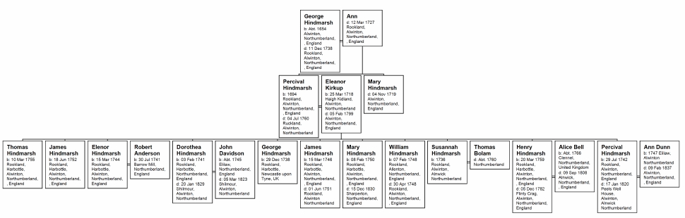 Family Tree For Percival Hindmarsh & Eleanor Kirkup