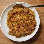 After five minutes, add the frozen peas and sweetcorn to the mince.